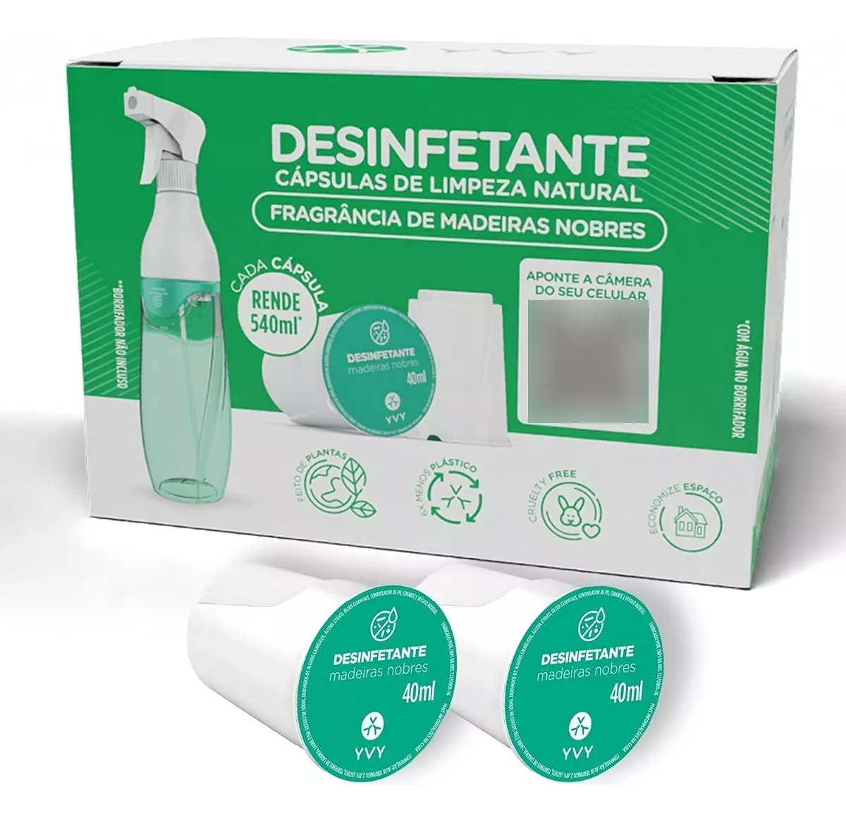 É fácil; você precisa de um Borrifador YVY que é reutilizável e uma cápsula. Encha o Borrifador YVY com água da torneira. Coloque a cápsula dentro (de cabeça para baixo). Clique e limpe. Cada cápsula faz 540 ml. Até seus filhos podem usar.