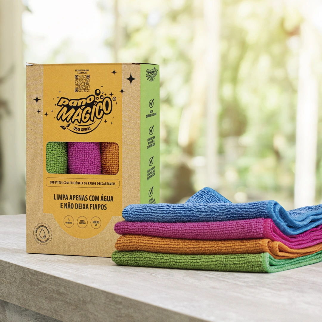 O Pano Mágico® Uso Geral possui tecnologia diferenciada e limpa de forma surpreendente todo tipo de superfície sem deixar pelos ou resíduos.